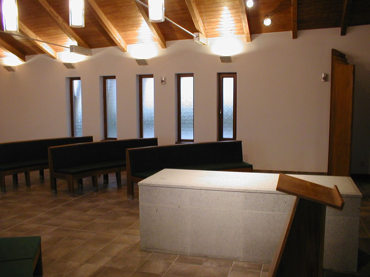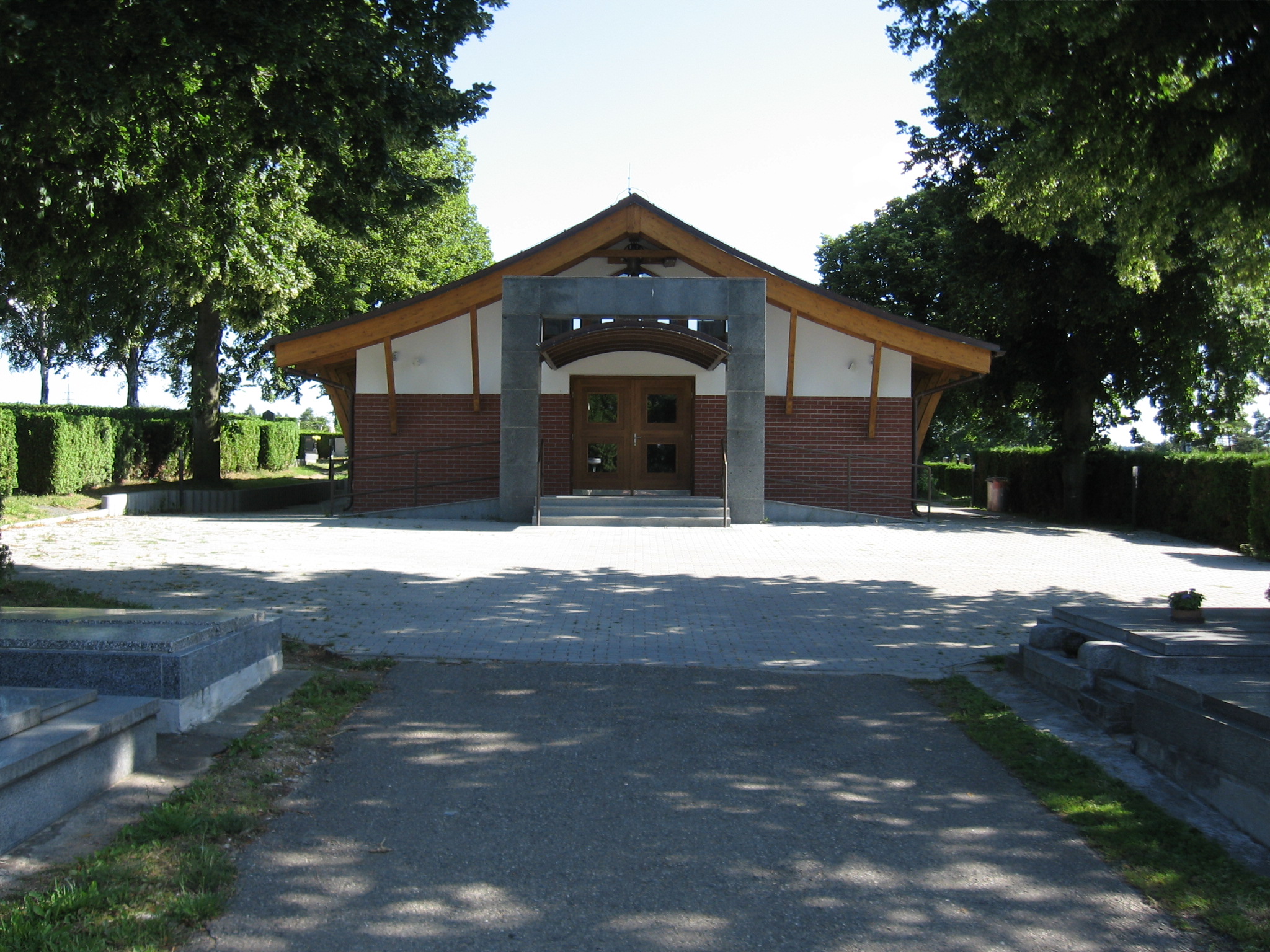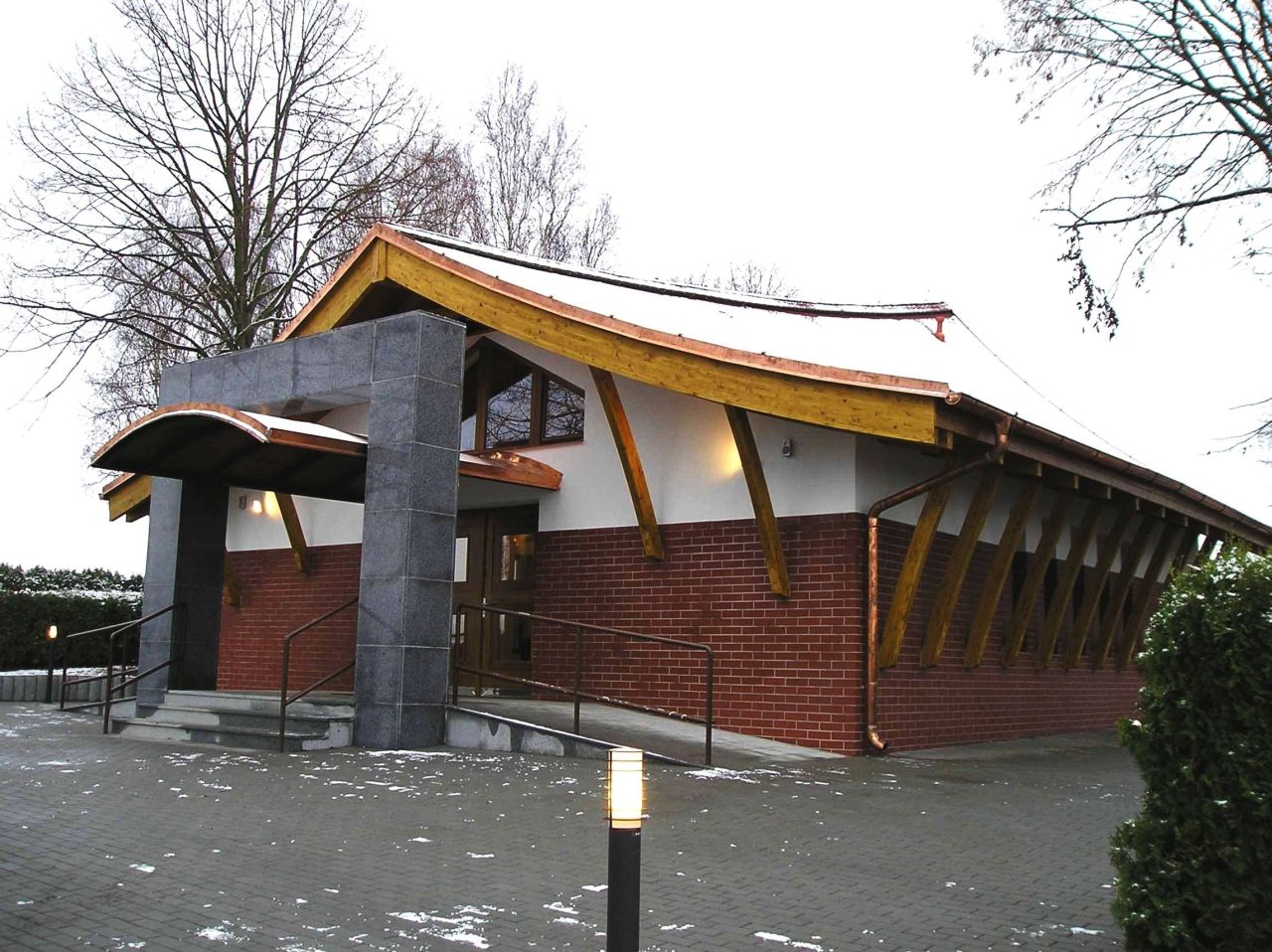 Obřadní síň byla postavena v centrální části městského hřbitova, na místě staršího nevyhovujícího objektu. Je určena výhradně ke smutečním obřadům, doplňkové technické provozy se nacházejí v provozním objektu u vstupu.