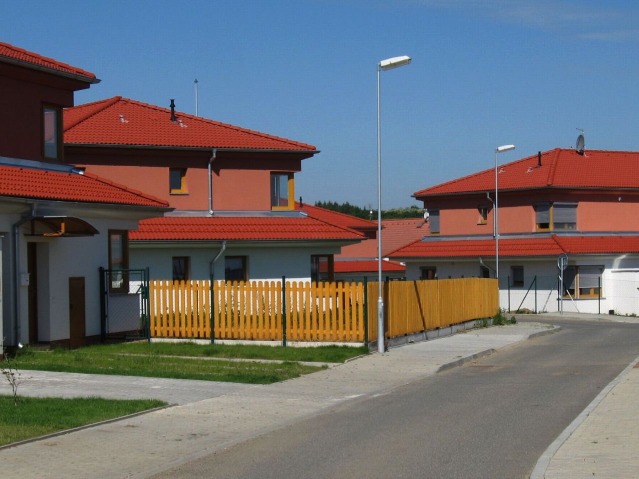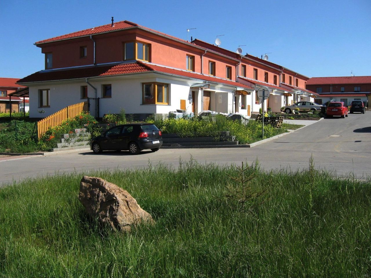 Soubor rodinných domů je budován na osluněné jižní stráni nad údolím Únětického potoka. Zástavba 117 RD je navržena z pěti základních typů domů, které jsou dále modifikovány podle členění do skupin a bloků. Místnosti ve druhém nadzemním podlaží nejsou klasickým podkrovím, neboť jejich strop tvoří rovné podhledy, upevněné zespoda na střešních vaznících. Díky tomu, nebylo nutné použít na celé zástavbě žádné střešní vikýře. Přesto jsou domy dostatečně členité díky půdorysnému zúžení pater domů.